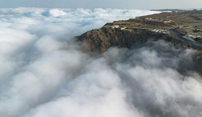مکہ ریجن کے شہر طائف میں موسم سرما کے آغاز کے ساتھ ہی پہاڑی علاقے دھند اور گھنے بادلوں میں لپٹ جاتے ہیں، جس سے فطرت کا منظر ساحرانہ ہو جاتا ہے۔