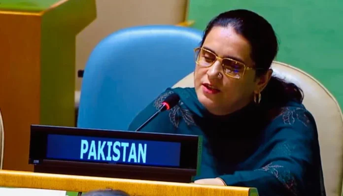 اقوام متحدہ میں پاکستان کی بینائی سے محروم سفارتکار صائمہ سلیم نے بھارت کے الزامات کا بھرپور جواب دیتے ہوئے کہا کہ بھارت کی نام نہاد جمہوریت اب عدم برداشت اور نفرت کے تھیٹر میں بدل چکی ہے، جہاں اسلاموفوبیا کو ادارہ جاتی شکل دی گئی ہے۔