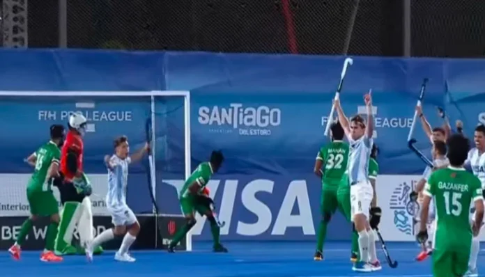 ارجنٹینا میں جاری پرو ہاکی لیگ میں پاکستان ہاکی ٹیم کو دوسرے میچ میں میزبان ارجنٹینا نے 3-2 سے شکست دے دی۔ پاکستان کی جانب سے کپتان عماد بٹ اور رانا ولید نے گول کیے، جبکہ ارجنٹینا کے ٹوماس، نکولس اور مائیکا نے ایک ایک گول اسکور کر کے اپنی ٹیم کو کامیابی دلوائی۔ یہ پاکستان کی لیگ میں دوسری مسلسل شکست ہے، پہلے میچ میں بھی وہ نیدرلینڈز سے ہار چکے ہیں۔