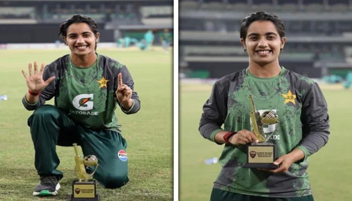 قذافی اسٹیڈیم لاہور میں کھیلے گئے تیسرے ون ڈے میں پاکستان کی اسپنر نشرہ سندھو نے زبردست کارکردگی دکھاتے ہوئے صرف 26 رنز کے عوض 6 وکٹیں حاصل کیں اور مین آف دی میچ قرار پائیں۔ یہ ان کے کیریئر کی بہترین بولنگ رہی جس نے ثنا میر کا پرانا ریکارڈ توڑ دیا۔