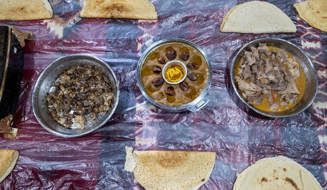 - مدینہ منورہ: الدبیازہ، التعتیمہ، فول، توے پر بھنی بکرے کی کلیجی، آملیٹ اور پنیر